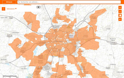 Au deuxième semestre de 2017, Rennes recensait par exemple 39% de locaux éligibles au réseau FTTH. A la même époque, la ville de Cesson-Sévigné regroupait presque 71% de locaux éligibles. Le Rheu 22%, Saint-Grégoire 15% et Beton 25%. La couverture fibre optique est donc encore inégale selon les villes. Dans d'autres villes, les travaux de déploiement du réseau très haut débit n'avaient pas encore débuté et aucun foyer n'était éligible au FTTH. On peut citer par exemples Saint-Gilles, Noyal-Châtillon-sur-Seiche, Vezin-le-Coquet ou encore Pacé.