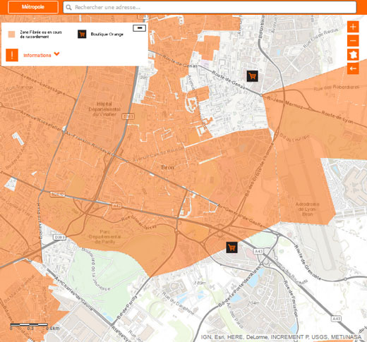 Fibre à Bron : cartes par opérateur et test d'éligibilité