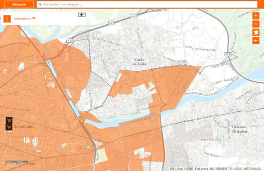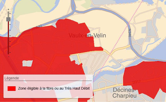 Les cartes d’éligibilité fibre optique à Vaulx-en-Velin (Orange et SFR)