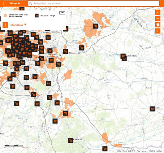 Orange déploie de son côté un réseau uniquement FTTH en Seine-et-Marne, avec ou sans co-financement de SFR selon les communes. La carte de déploiement Orange ci-dessous indique les zones déjà raccordées dans le département en orange.